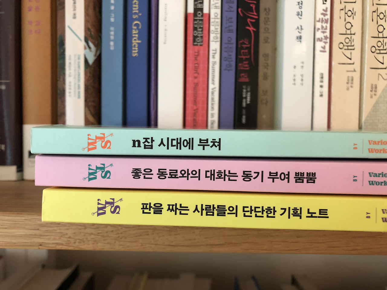 책읽기와 글쓰기가 어쩌면 그런 고민의 몸부림 중 하나인지 모르겠습니다. 직업 이전의 나, 혹은 직업과 통합된 나, 나아가 직업 너머의 나를 단련하고 준비시키는 과정이랄까요. 물론 읽기와 쓰기는 그 자체로 순수한 배움의 기쁨과 존재의 발현으로서의 의미가 있기도 하지만요. 이런 과정이 나를 어디로 데려다줄지 알 수 없지만, 이 작은 걸음으로 조금씩 나아가는 과정이라 생각합니다. 그런 과정에서 읽어보고 있는 것이 이 책 『n잡 시대에 부쳐』이기도 하고요. 이 책은 bottlepress에서 펴낸 워커스 라운지Workers' Lounge 시리즈 중 한 권이기도 합니다. 이 중 맨 처음으로 읽은 책은 『좋은 동료와의 대화는 동기 부여 뿜뿜』이었어요. 첫 책을 재미나게 읽은 터라 다른 책들도 궁금해졌지요. 이 외에도 『판을 짜는 사람들의 단단한 기획 노트』도 함께 읽어보고 있습니다.