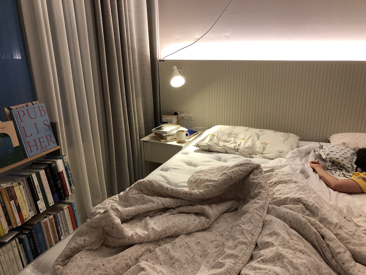 이곳에서 나는 미래를 꿈꾸고, 아이는 곁에서 달콤한 오늘의 꿈을 꾼다. 침대 하나가 뭐 그리 별거일까 싶지만, 내게는 오래 꿈꿔온 공간이고, 매일 어쩌면 집에서 가장 많은 시간을 보내는 장소이기도.