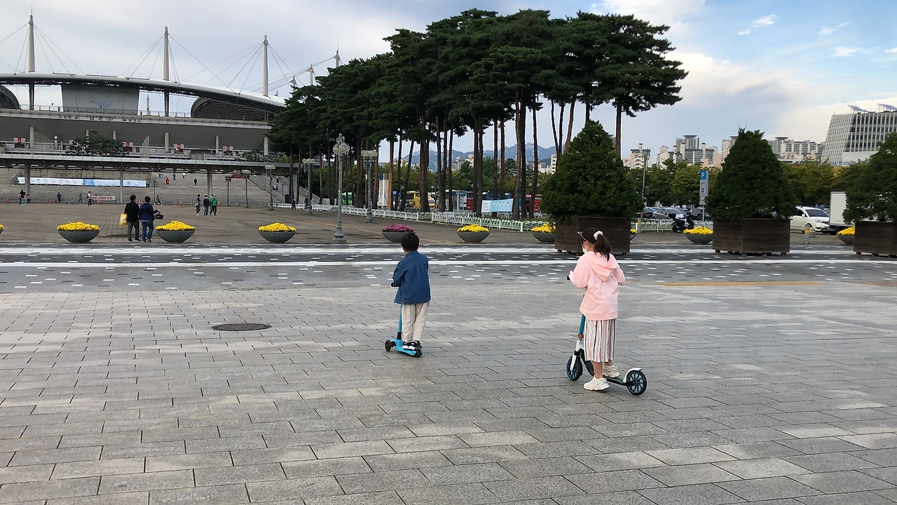 킥보드를 가지고 나갔습니다. 공원에도 얼마나 많은 사람들이 나와 있던지. 어른도 아이도, 좋은 계절에는 늘 유원지처럼 북적북적한 곳이에요. 피곤한 몸으로(대체 집에 있는 시간이 왜 더 피곤한 건데) 겨우 일어나 나갔는데, 그래도 역시 탁 트인 너른 풍경은 참 좋더군요. 아이들이 아니었으면 집에 콕 박혀서 한없이 뒹굴거리고픈 날이었지만 말입니다.
