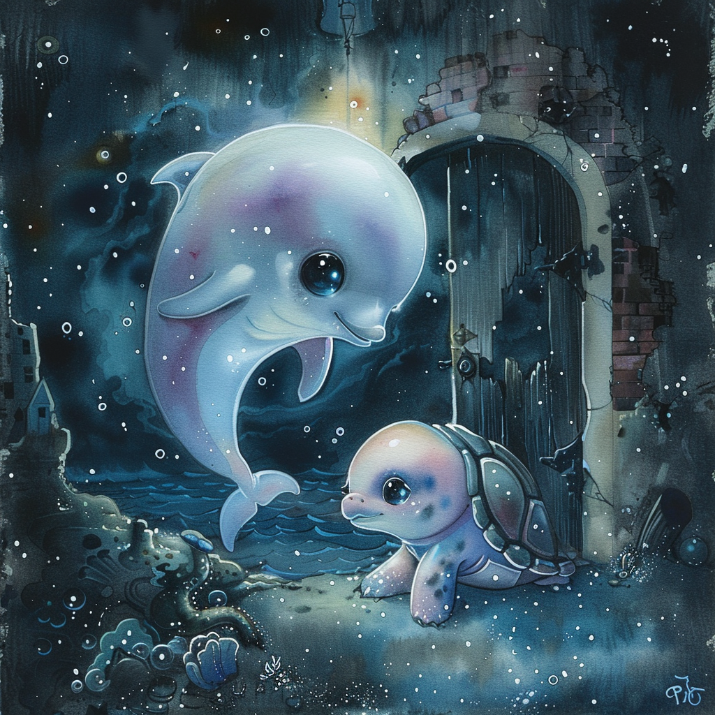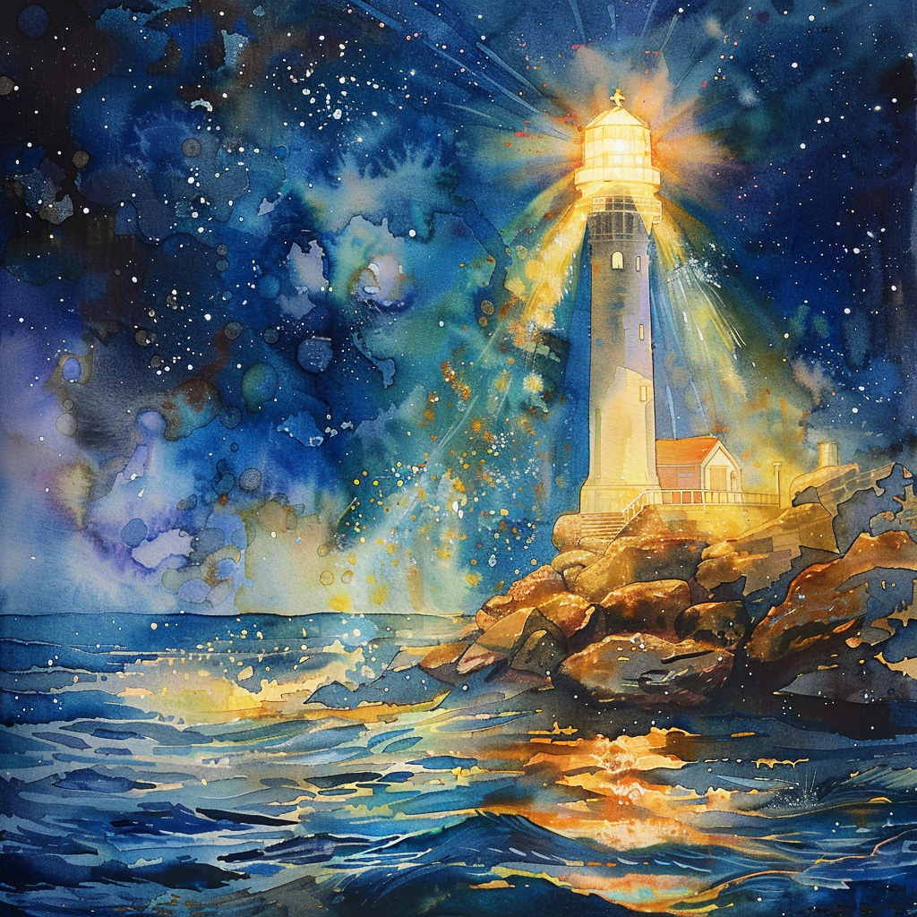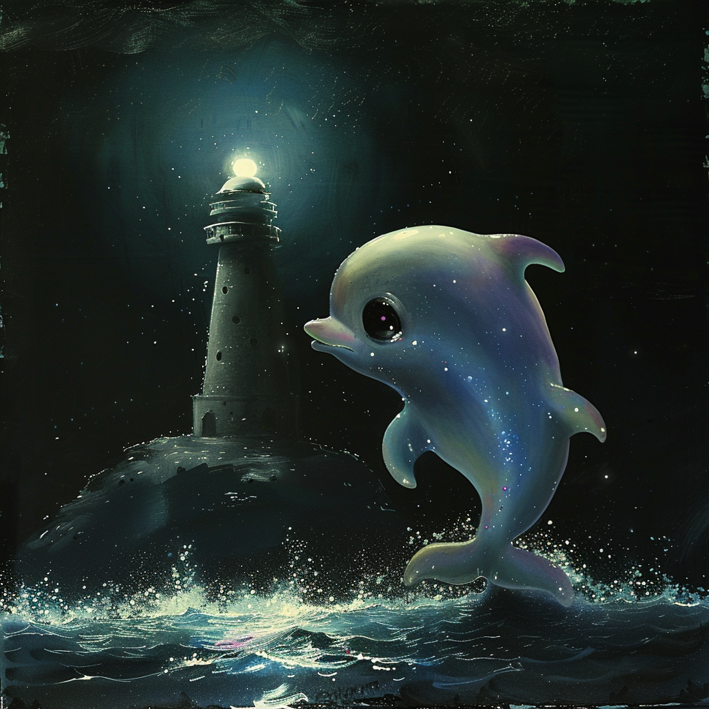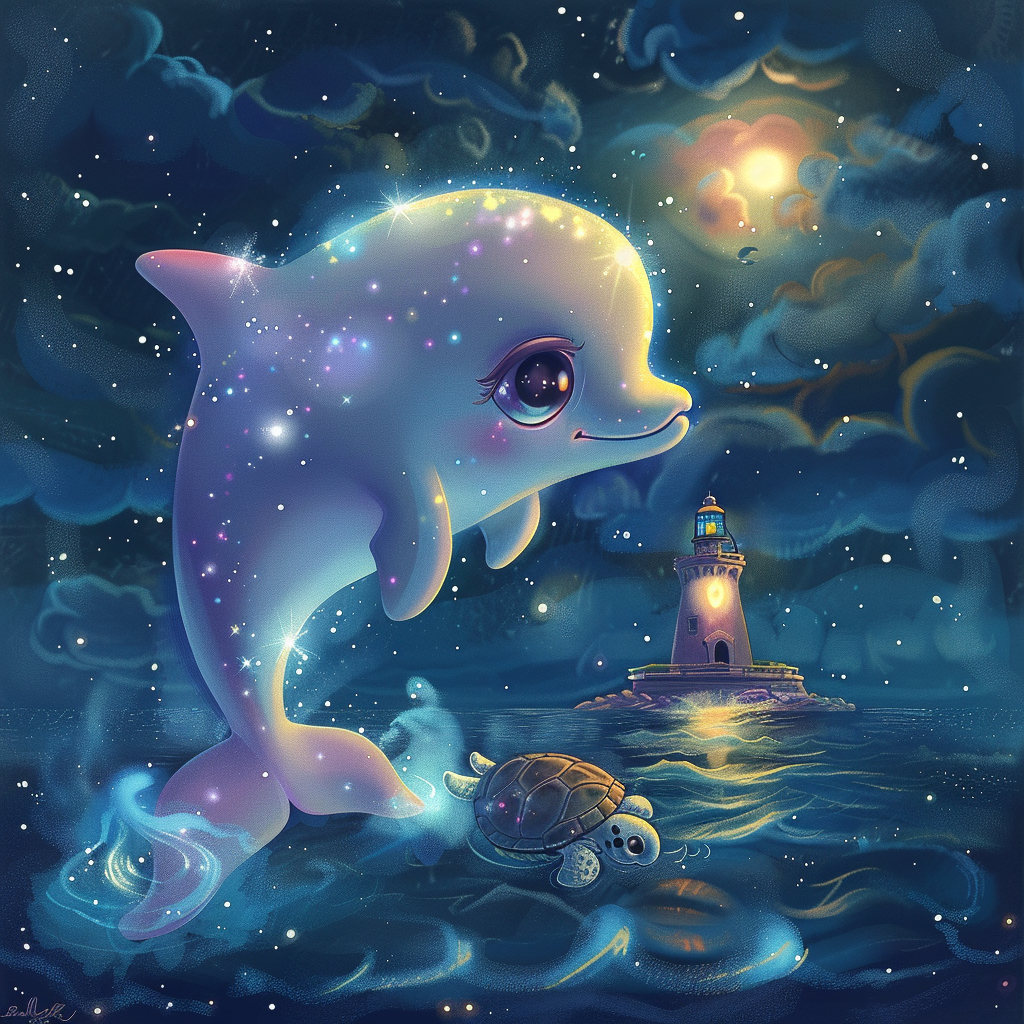 Stardam, along with the turtle, circled around the lighthouse, gathering the starlight from the night sky into her eyes and fins, and began to continuously sprinkle it onto the lighthouse.