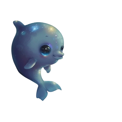 very dark deep sea background, one dolphin with starry eyes and fins, A distant tiny silhouette of an extinguished dark very small tower, the figure of a dolphin gazing at that silhouette, The starlight is only visible on the dolphin's fins, with the rest of the background depicted completely dark, devoid of light, without stars --cref https://s.mj.run/soP9m2P_3wA --cw 100 --ar 1:1 --v 6.0