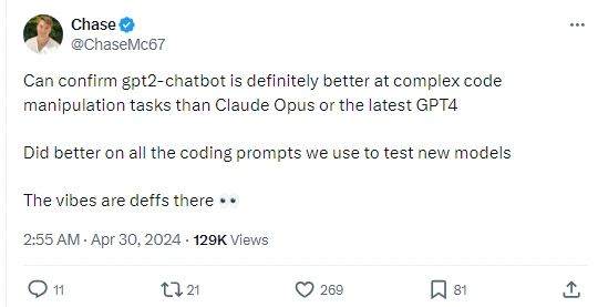 'Gpt2-Chatbot'은 LMSYS Chatbot Arena라는 인공지능 언어 시스템 비교 웹사이트에서 조용히 등장했습니다. 그러나 그 성능은 조용할 것이 없었습니다. AI 전문가들 사이에서는 이 모델이 OpenAI가 지금까지 공개한 최신 버전인 GPT-4와 비교해도 전혀 뒤지지 않으며, 어떤 면에서는 뛰어나다는 평가를 받고 있습니다.