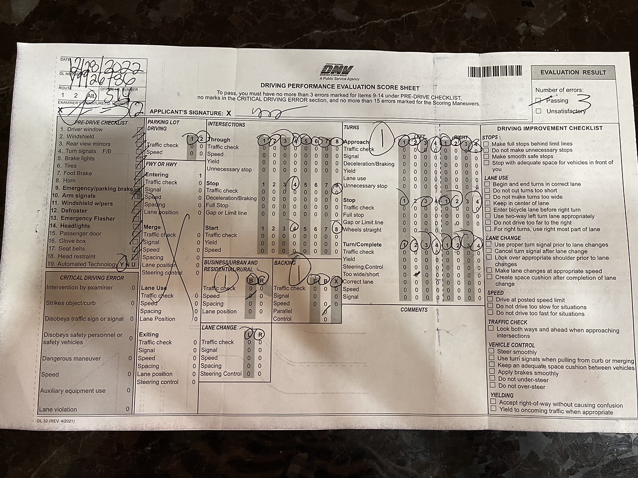 나는 두 차례 떨어지고, 세 번째 시도가 안 돼서 DMV에 갔으니 할 말이 없지만, 남편은 합격 메일을 받고 실기 시험 신청을 하러 DMV 방문했더니 ‘합격 기록이 없다’는 황당한 경우였다. 아, 미국의 행정 시스템이란.