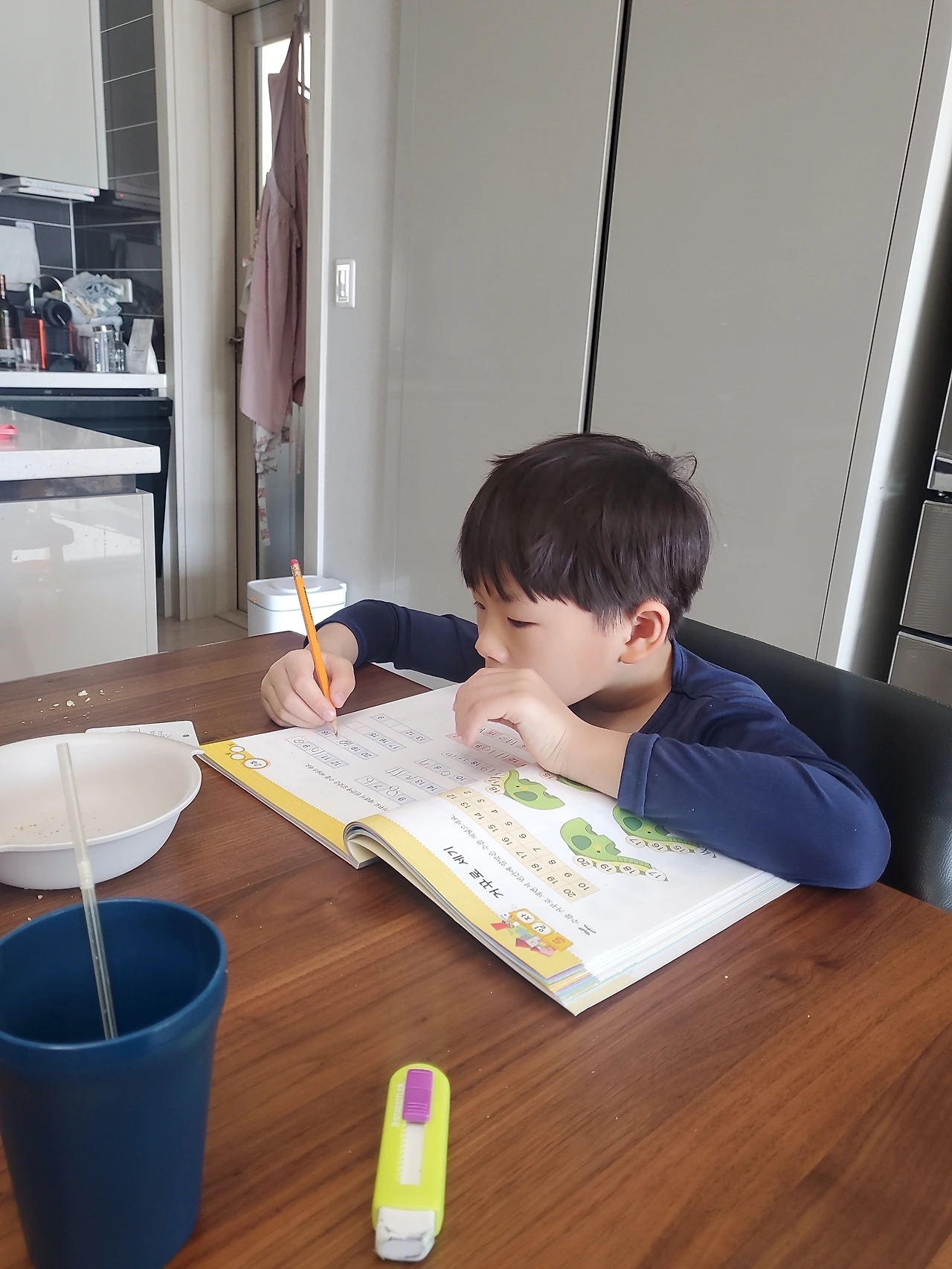 솔이에게 맞는 문제집을 찾아보고, 주문하고, 집에서 함께 풀고. 그리고 솔이가 문제집을 풀고 나면 내가 채점을 하고. (일부러 빨간 색연필을 아주 많이 사다 놨다. 솔이는 내가 채점해 주는 걸 아주 좋아한다.)그리고 다음 날 공부할 계획을 세우고. 다 푼 문제집이 한 권씩 쌓여가는 기쁨은 이루 말할 수 없다.
