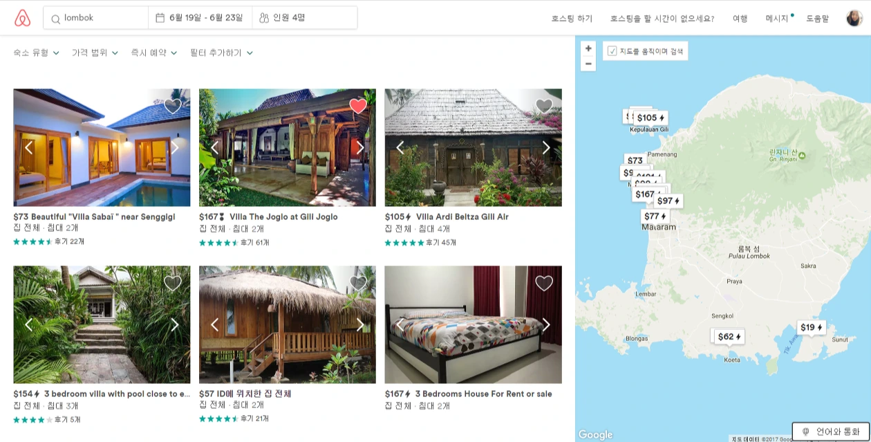 롬복에서 매일매일 다른 액티비티를 할 예정이라 숙소만큼은 편안하고 충분한 휴식을 취할 수 있는 장소를 예약해야 했다. 예산은 넉넉하지만 완벽한 숙소를 찾아야 한다는 생각에 에어비앤비에 있는 롬복, 길리 숙소는 거의 다 찾아본 것 같다.