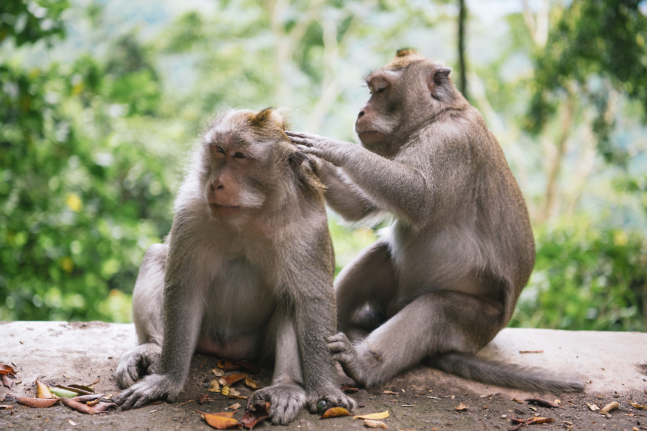 바짓가랑이를 잡아당기는 느낌에 아래를 보면 세상 아련한 표정으로 땅콩을 바라보고 있는 볼에 하얀 털이 난 대장 원숭이가 내 바지 끝을 꼭 잡고 있다. 귀여워 죽을 것만 같다. 햄스터 마냥 볼에 한가득 씹지도 않은 땅콩을 넣어 놓고 보드라운 손으로 바짓가랑이를 잡으며 다른 한 손을 내민다. 땅콩으로 야바위 하며 원숭이와 놀았다. 왼손에 숨기면 찰떡같이 왼손을 툭툭 치며 달라고 한다. 그 손가락 마디마디 감촉이 너무 부드러워서 손을 잡고 놓지 않고 싶다. 엄마 품에 꼭 안겨있는 아기 원숭이는 호기심반 두려움 반이고, 엄마는 이미 안겨있는 아기 원숭이를 두 팔로 꼬리로 더욱 꼭 감싼다. 사람과 꼭 같다.