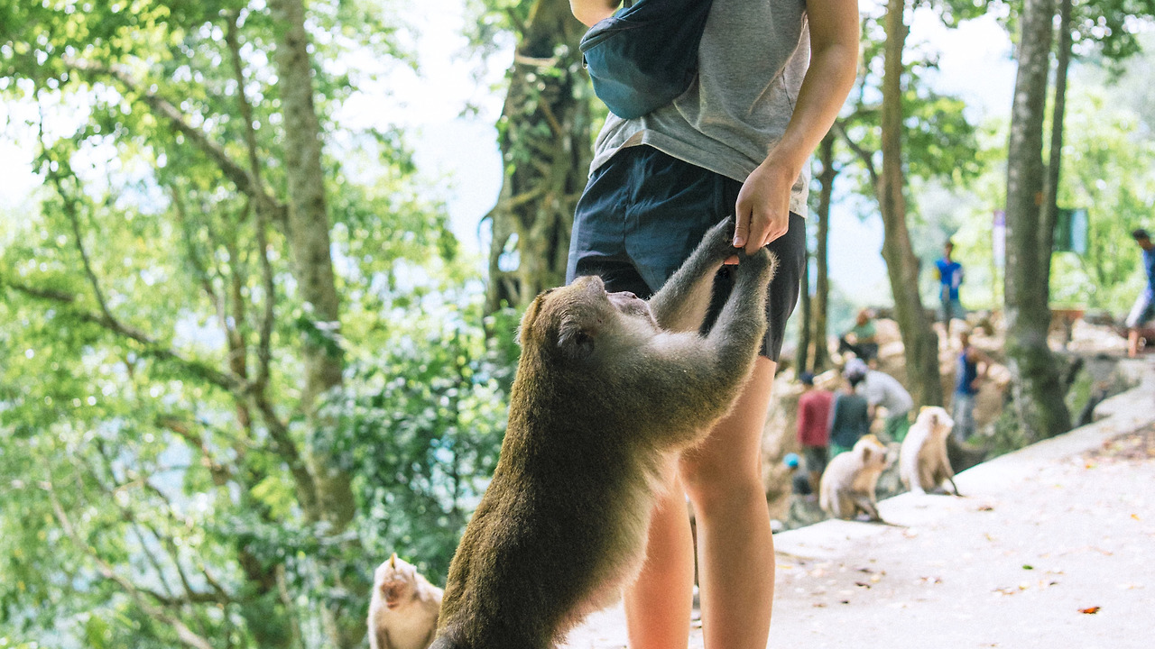 린자니 산 해발 700미터 높이까지 산길을 따라 구불구불 올라가다 보면 갑자기 원숭이 서식지가 나타난다. 이 길의 주인은 원래 원숭이여서, 길을 따라 운전하면 한참 동안 원숭이들을 만날 수 있다. 땅콩 봉지 소리가 부스럭거리면 숨어있던 원숭이들이 일제히 내려온다. 나를 향해 달려오지만 공격하지 않고, 일정한 거리를 맴돌며 땅콩을 향한 사랑의 눈길을 보낸다. 땅콩을 들고 걸어가면 마치 피리 부는 사나이가 된 듯 원숭이 떼를 데리고 다닐 수 있다.
