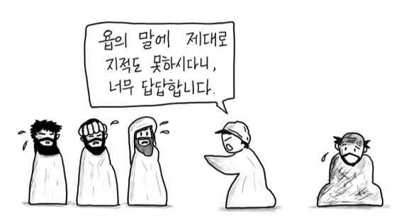 욥이 자신을 의인으로 여기므로 그 세 사람이 말을 그치니
