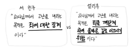 여호와께서 욥에게 이 말씀을 하신 후에 여호와께서 데만 사람 엘리바스에게 이르시되 내가 너와 네 두 친구에게 노하나니 이는 너희가 나를 가리켜 말한 것이 내 종 욥의 말 같이 옳지 못함이니라