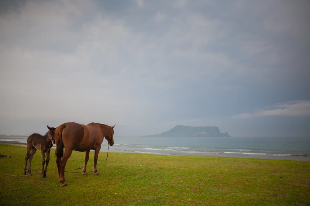 그래도 제주 하면 '말' 아니겠는가. 평소에 구경하기도 힘든 말들을 제주에서는 조금만 주의를 기울이면 볼 수 있을 정도다. 한라산 인근을 지날때 방목하는 말들이 나타나면 차 뒷좌석에 앉은 아이들의 눈이 초롱초롱 빛난다. 섭지코지의 백마에게는, 내가 코앞에서 수십 장의 프로필 사진을 찍어주었다. 성산 인근에서 아직 걸음이 미숙한 조랑말을 보듬어주는 어미 말도 기억에 남아 있다.