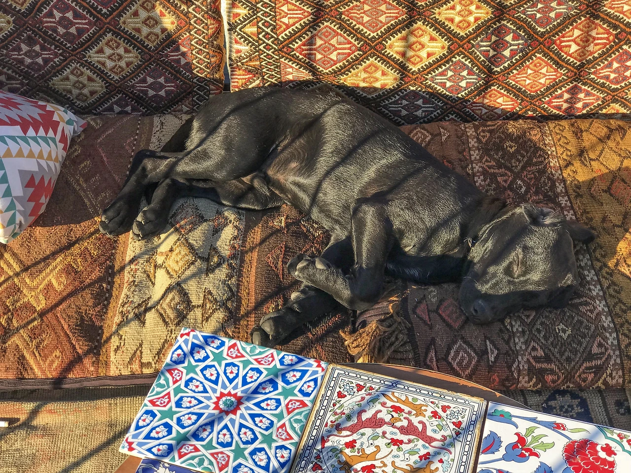 카파도키아에 머물며 친해진 개 한 마리가 있었다. 게스트하우스 사장님이 키우던 위스키였다. 처음 들었을 땐 대충 지은 이름 같았는데, 위스키를 보며 웃지 않는 사람은 드물었다. 애교가 많고 사람을 워낙 좋아하는 탓에 위스키의 까만 털은 반질반질하고 부드러웠다. 위스키의 특기는 조식 시간에 게스트들 슬리퍼를 물고 도망가기. 테라스에서 일기 쓰고 있는 나에게 다가와 다리 비비기. 마트 갈 때 따라와 장 다 볼 때까지 입 벌리고 기다리기. 항상 사람 곁에 머물며 장난치기를 좋아하는 아이 었다. 등치도 제법 크고, 검은 눈동자가 나를 보며 꼬리를 흔들 때면 무서워서 얼음이 되던 나였는데, 이상하리만큼 금세 정이 갔다.