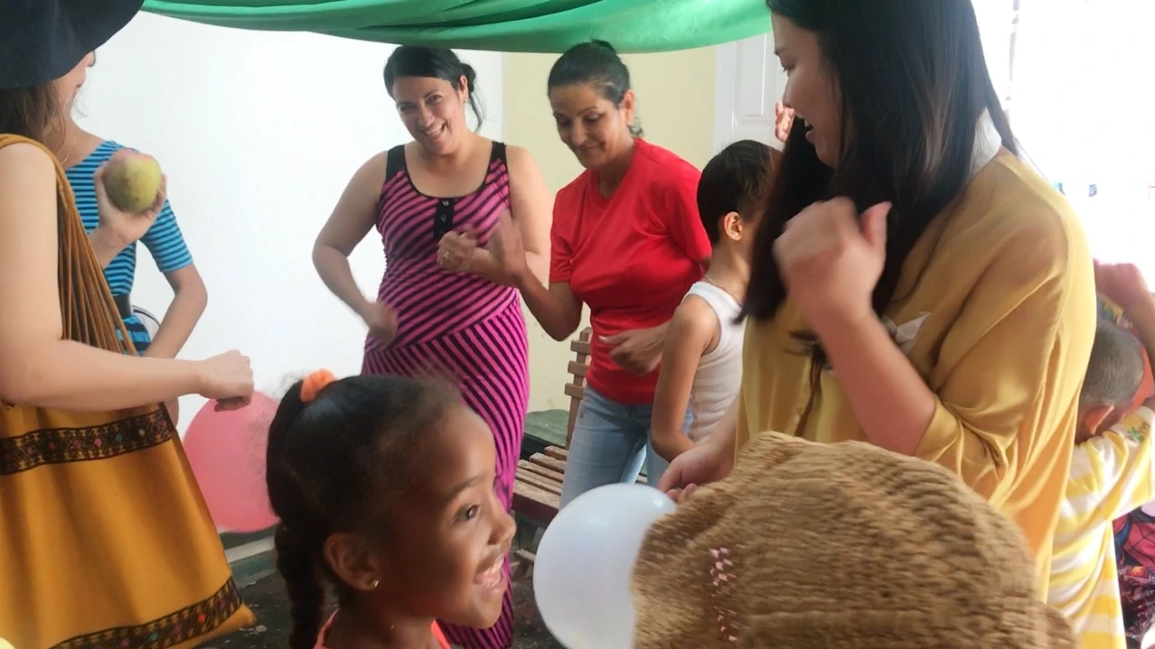 트리니다드 두 번째 날이었다. 양손에 물과 망고를 들고 땅에서 올라오는 후끈한 지열과 내리쬐는 햇빛에 지쳐 숙소로 돌아가는 길이었다. 귓속으로 새어 들어오는 신나는 라틴음악소리에 시선이 오른쪽으로 돌려졌다. 아이보리색 건물 내부에서 어떤 행사를 하고 있는 듯했다. 아이들과 어른들은 노래를 부르며 춤을 추고 있었다. 내부도 모자라 바깥에 나와 풍선 하나씩 들고 춤을 추는 아이들도 있었다. 내심 그들 행사에 초대되길 바라는 마음을 품은 채 구경하고 있는데, 사람들이 활짝 웃으며 들어오라고 손짓을 한다. 오예! 들어오라는 말이 끝나기가 무섭게 얼른 들어갔다. 원하는 순간에 초대됐을 때 우물쭈물 망설이는 시간은 내겐 사치였다.