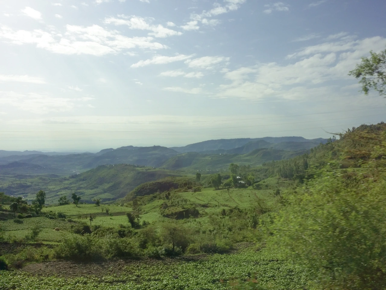 17시간 버스 이동이라 자다 깨고를 반복하던 중, 옆에 앉아 있던 하연이가 한쪽 어깨를 흔들며 말했다. "언니. 일어나서 저 창밖에 좀 봐봐!" 눈이 반쯤 감긴 상태로 커튼을 오른쪽으로 치고 창밖을 내다봤다. 무성한 초록색 풀, 초록색 나무, 초록색 산은 빛을 받아 선명한 색을 뽐내고 있었다. 그 뒤로 하늘색 도화지처럼 펼쳐진 맑은 하늘까지 내 눈 가득 들어왔다. 자연 그대로의 초록색이었다. 내가 여태까지 살면서 본 초록색은 초록색이 아니라는 듯, 초록과 밝은 빛의 조합은 눈이 부시게 아름다웠다. 에티오피아에 도착해서 밥도 제대로 먹지 못하고, 녹물로 샤워하고, 사람들에게 부담스러운 시선을 받아냈던 고생이 잠시 잊히고 자연의 아름다움이 갑절이 되어 내게로 들어왔다.