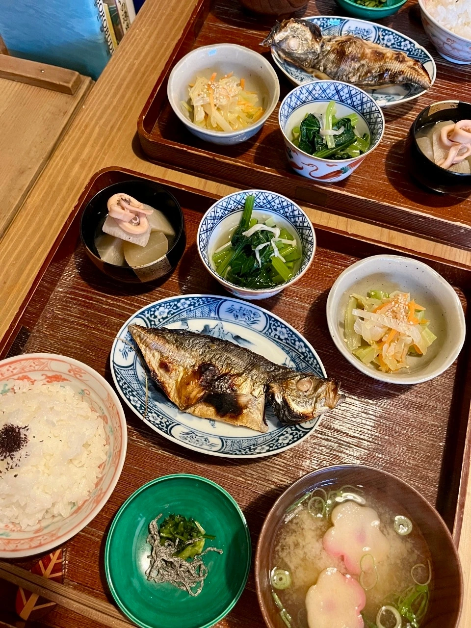 아이가 깨어나면 든든한 교토 가정식을 먹이고 싶었다. 우리가 찾아간 곳은 기요미즈 타테바라는 오반자이 집. 후기가 많지 않은 걸 보니 여행자보다는 현지인에게 익숙한 곳인 듯했다. 문을 밀고 들어서자 밥 짓는 냄새가 먼저 번져왔다. 안쪽 다다미 방에서 웃음 섞인 일본어가 흘러나왔고, 우리는 바깥쪽 식탁에 자리를 잡았다. 주인장은 혼자 주문을 받고 조리를 했다. 손이 바쁜 와중에도 음식은 차분하게 차려졌다. 생선구이와 채소 반찬, 꽃 모양 어묵이 들어간 국물까지. 우리 기준에는 간이 심심했지만 아이는 작은 입을 오물거리며 그 미묘한 맛을 받아들이고 있었다. 식사를 마칠 즈음 식탁 모서리에 따뜻한 차 두 잔이 놓였다. 아이의 손이 닿을까 염려한 배치였다. 표정이 없고 말수는 적었으나, 주인장의 손님과 음식을 대하는 태도에서 진심이 묻어났다.