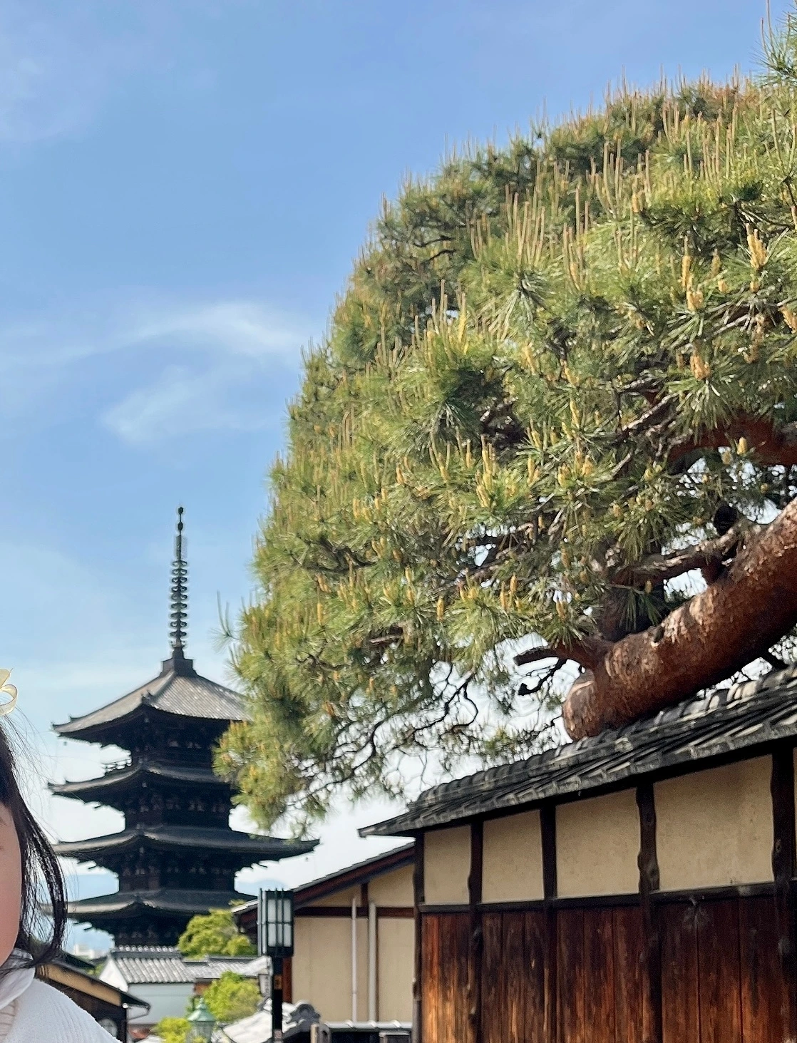 한결 단단해진 발걸음이 기요미즈데라로 향했다. 절벽 위에 자리한 사원은 멀리서도 위용을 드러냈다. 다만 본당은 발 디딜 틈 없이 붐볐다. 우리는 자연스럽게 사람을 피해 한적한 길로 돌아갔다. 아이는 바닥의 돌을 하나씩 가리키고 나무로 지어진 건물 앞에서 뛰어올랐다. 유명하다는 오토와 폭포는 굳이 보지 않아도 괜찮았다. 그보다 중요한 건, 이미 여기 있었다. 산넨자카로 내려가는 길, 골목은 점차 옛 교토를 거닐게 했다. 길 끝에 삐죽 솟은 야사카노토가 산책을 독려했다. 아이를 번쩍 들어 올려 탑과 눈높이를 맞춰 보았지만, 정작 아이는 심드렁한 얼굴로 고개를 돌렸다.