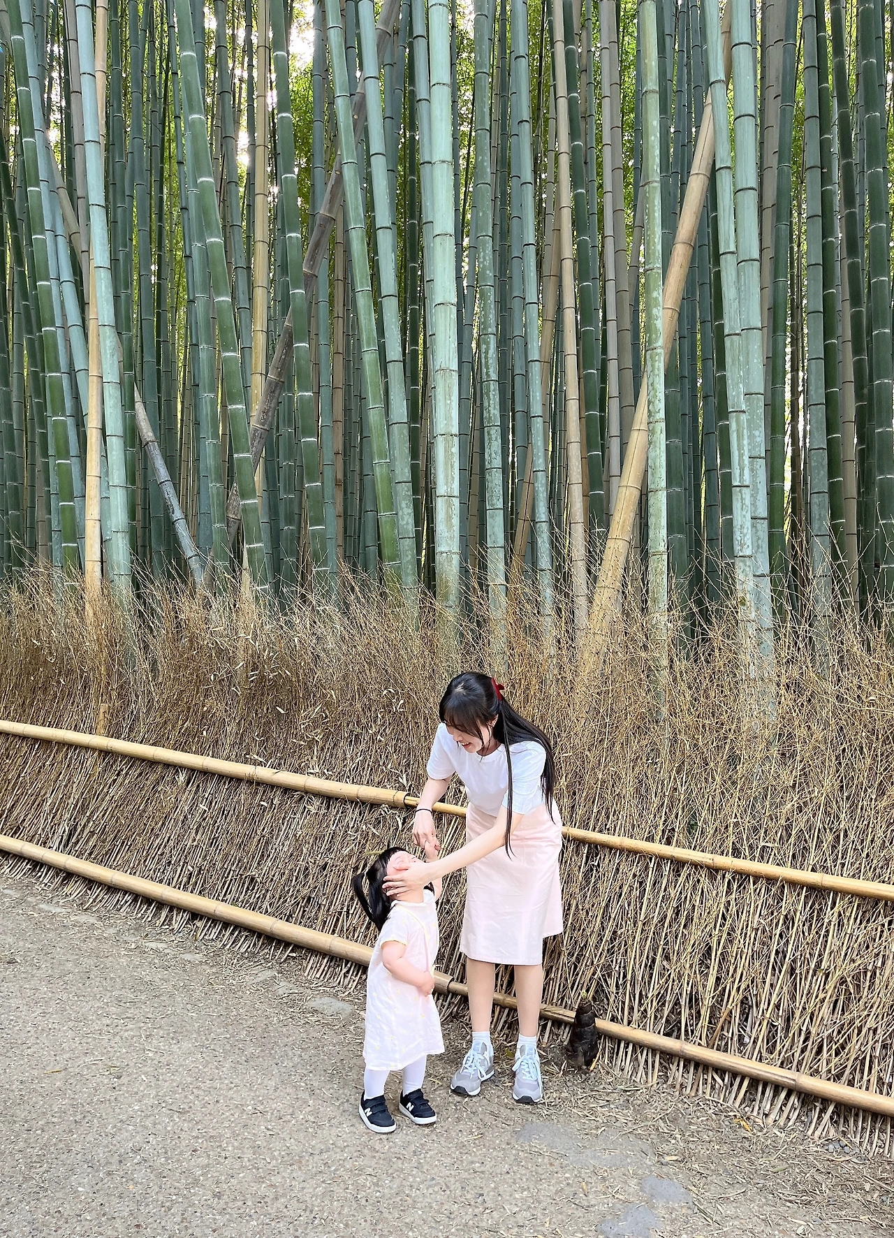 아라시야마역에 이르자 공기가 쾌적했다. 대나무숲에 가기까지 수많은 상점들이 발길을 붙잡았다. 특히 리락쿠마로 꾸며진 카페는 아이를 핑계로 멈춰 설 뻔했다. 치쿠린은 비밀스러운 숲이었다. 키를 가늠할 수 없는 대나무들이 빽빽하게 서 있었고, 바람이 스칠 때마다 잎사귀가 서로 부딪히며 속삭임에 가까운 소리를 냈다. 아이의 독사진을 남겨주고 싶었지만 낯설었는지 손을 놓으려 하면 금세 울음을 터뜨렸다. 결국 손을 꼭 잡은 채로 몇 장의 사진을 찍었다. 덜컥 커버린 것 같아 조바심이 나다가도, 이런 순간이면 여전히 내 품의 아기라는 사실에 왠지 안심하게 된다.
