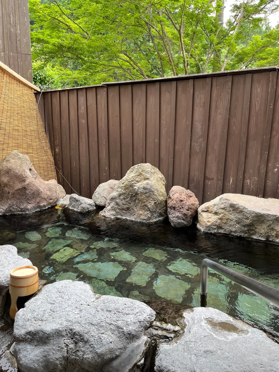 이곳에는 대욕장과 가족탕이 있었지만 편히 이용하기 어려울 것 같아 개인탕이 딸린 객실을 예약했다. 우리만 사용할 수 있는 소박한 야외 온천이었다. 아이가 잠든 후 남편과 번갈아 따뜻한 물에 몸을 담갔다. 밤하늘 아래에서 물의 온기를 느끼는 시간은 기대보다 깊은 휴식이었다. 가끔 물 위나 돌 사이로 곤충이 날아들 만큼 자연과 가까이 있었다.
