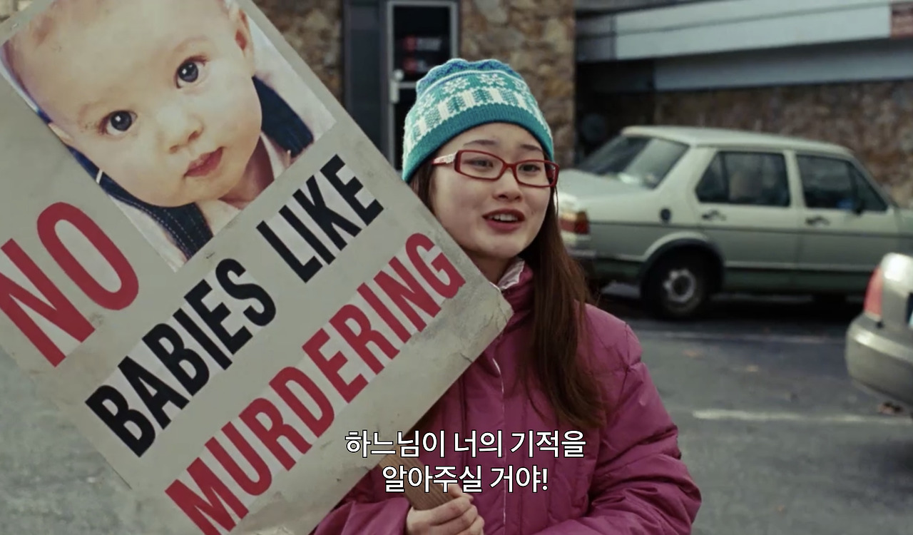결과적으로 주노는 임신 중절을 선택하지 않습니다. 그 이유는 생각보다 별거 아니에요. 그냥 '옳지 않은 것'처럼 느껴졌기 때문입니다. 하지만 감독은 영화를 보는 이들에게 분명하게 메시지를 던져줘요. 임신중절도 여러분이 가진 선택지 중에 하나입니다,라고. 누군가(영화에서는 동양인 아이로 표현된)는 임신 중절을 죄악처럼 생각하고 비난하기도 하겠지만 그들의 생각은 전혀 중요하지 않게, 우스꽝스럽게 표현됩니다. 그래서 참, 영화가 좋았어요.