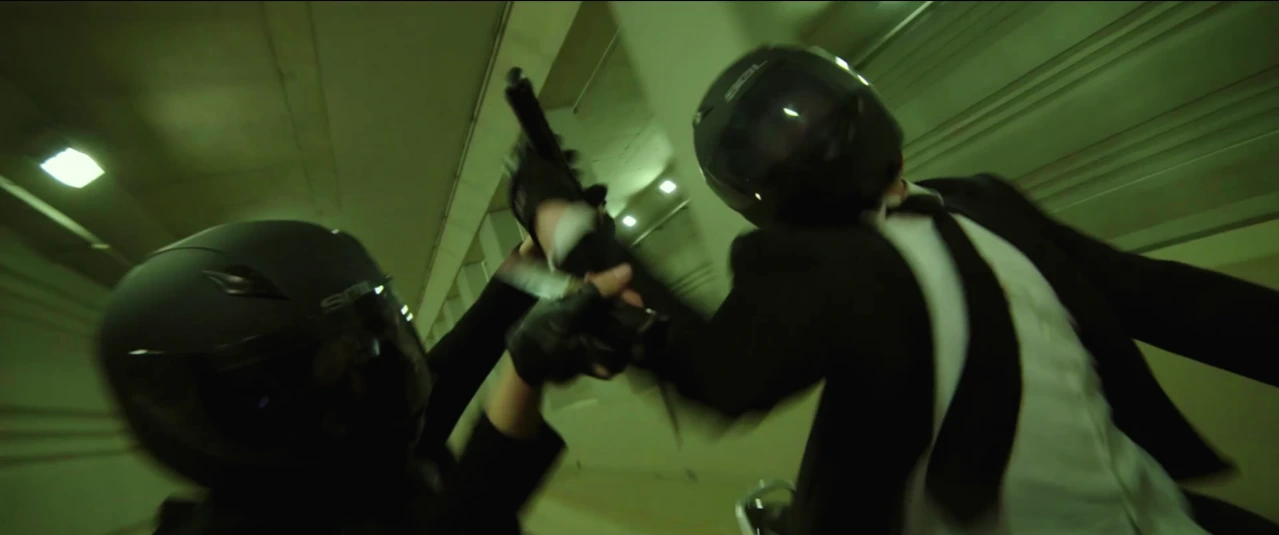 감독은 자신의 장기를 꽁꽁 묶고 서사에 몰두합니다. 무슨 생각이었던 걸까요? 액션 영화에 액션이 없어요. 액션 영화에서 액션이 없을 때는 거대한 악이 클라이맥스를 위해 빌드업을 해야 하는데, 갑자기 죽은 줄 알았던 전 남편을 띡 던져 넣는 것으로 대신합니다. 이렇게 등장하는데 이중상(신하균)이 강력해 보일 수 있나요? 심지어 숙희는 국정원에서 훈련을 받기 전에도 70명을 도륙 낸 전력이 있는데요.