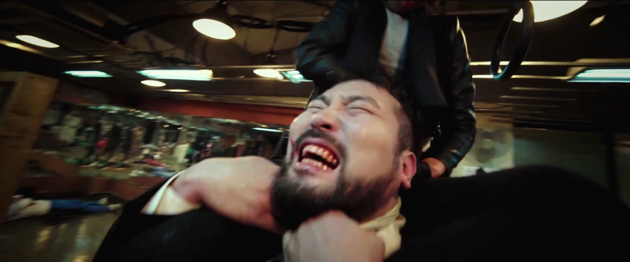 이렇게 엄청난 액션 장면들을 투하했습니다. 초반에도 분명 약점은 보이죠. 서사를 담당하는 숙희의 과거사를 담을 때는 어설프다가 액션만 멋집니다. 똑같이 타란티노 감독의 <킬빌>을 오마주 한 것으로 보이는데 일본도 검투는 타란티노에 견줄 만큼 훌륭했고 침대 밑 회상씬은 한참 못 미쳤어요.