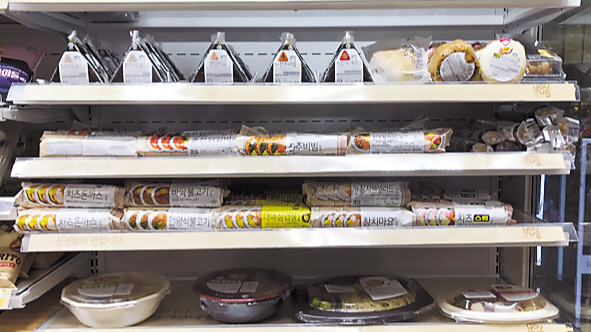 오늘 점심은 12시 50분부터였습니다. 평소에 비해 좀 늦은 점심입니다. 편의점에 부리나케 달려갔습니다. 역시나 이미 매대는 휑 합니다. 남은 게 없습니다. 저 말고도 편의점에서 점심 식사하시는 분들이 많은가 봅니다. 조금 늦었다고 이렇게 물량이 없을 줄은 몰랐습니다. 바로 다른 편의점으로 달려갑니다.
