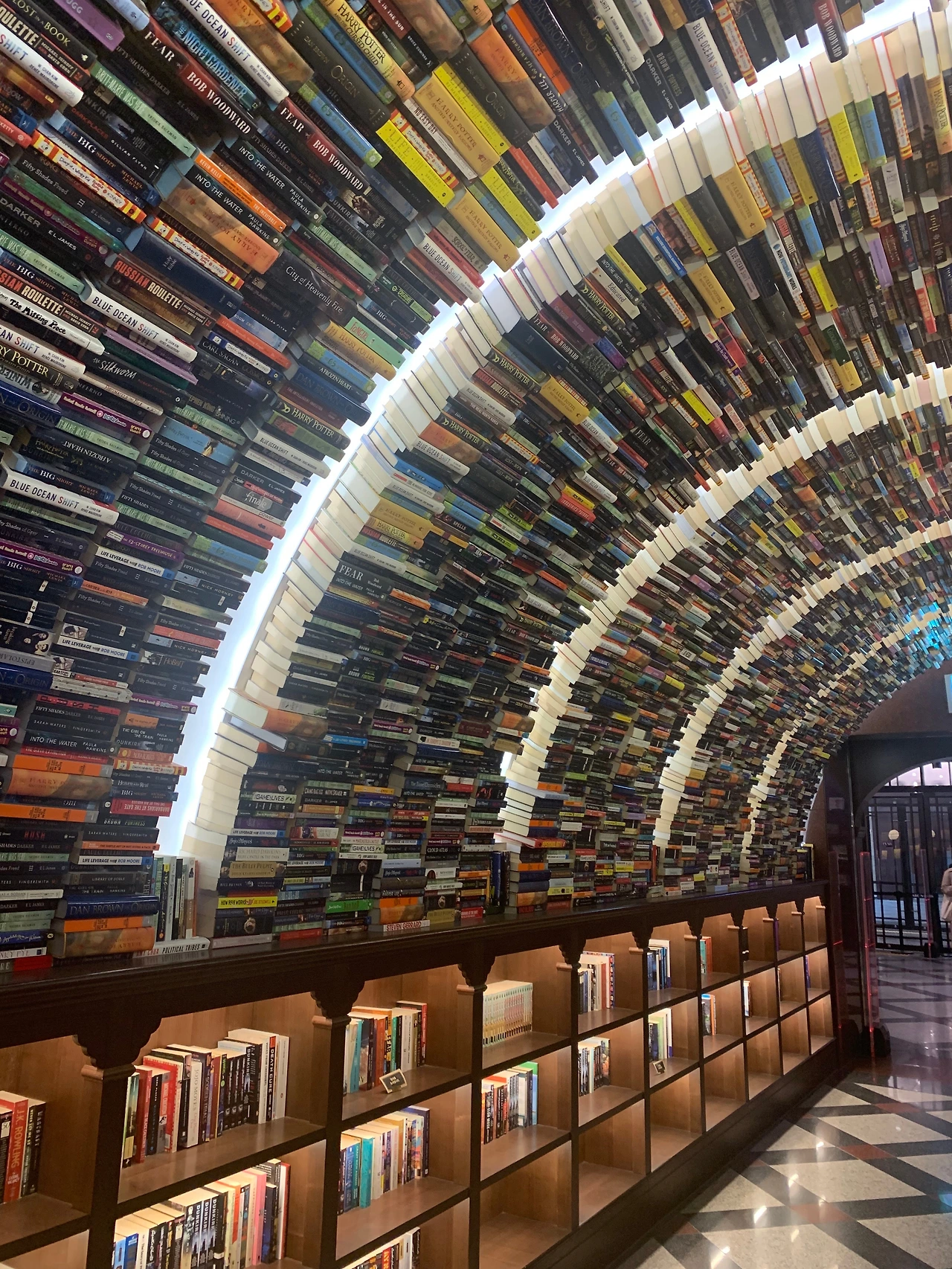 늘어선 책꽂이마다 책들은 일반 도서 분류표대로 큰 편향없이 골고루 배치되어있었다. 이곳의 시그니처는 책 터널이었는데, 마치 이것은 일본 도쿄의 시나가와 터널 수족관을 연상케하였다. 한 귀퉁이에 벨라스케스의 시녀들의 한 부분을 확대하여 그린 그림이 붙어있었고, 그 위로 무려 4천권이 넘는 서적들이 서로의 몸을 맞대고 압착하여 큰 굴을 이루어 내었는데 어떤 이는 그것을 압박과 해방으로 해석하기도 하고, 또 어떤 이는 지식의 아우성이라고도 하였다.