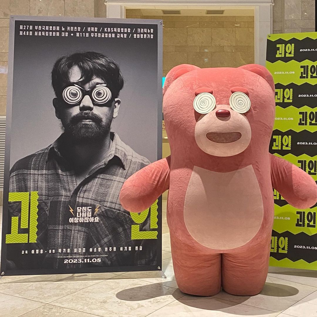 한없이 귀여운 분홍색 곰돌이와 수염이 덥수룩하게 난 남자의 조합이라, 참으로 기이했습니다. 동시에 묘한 기대감이 차올랐습니다. '이 영화'와 '저 곰'을 만든 사람이 같다는 것만으로 "당신도 나처럼 이상하잖아요"라는 포스터 속 카피가 단번에 이해되어 버렸달까요? 무대인사에서부터 이상하고 알 수 없는 기운이 폴폴 풍겼던 영화 <괴인>을 관람했습니다.