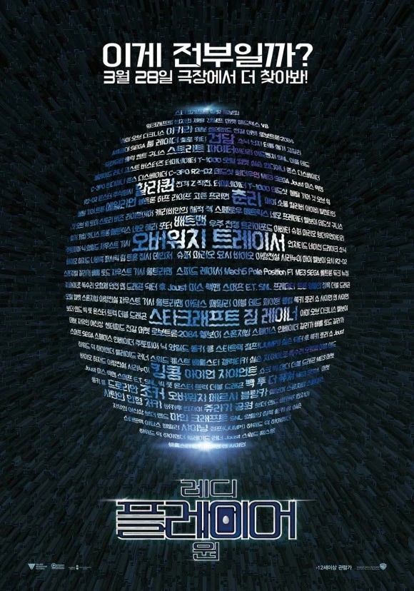 물론 VR기기가 전면에 등장하고, 영화 자체가 반은 가상 세계인 메타버스(Metaverse, 3차원 가상세계)에서 펼쳐집니다만, 이 영화를 단순히 ‘게임 영화’라고 퉁쳐서 설명하기엔 조금 아깝습니다. 영화를 보다 보면 모두 느끼실 테지만, 영화는 게임보다도 ‘대중문화사’를 소개하는 데 더욱 진심이거든요. 매 장면, 매 대사마다 1980년대부터 오늘날까지의 온갖 대중문화를 인용하고 오마주한 게 느껴집니다. 오죽하면 이런 포스터가 나왔을 정도입니다.