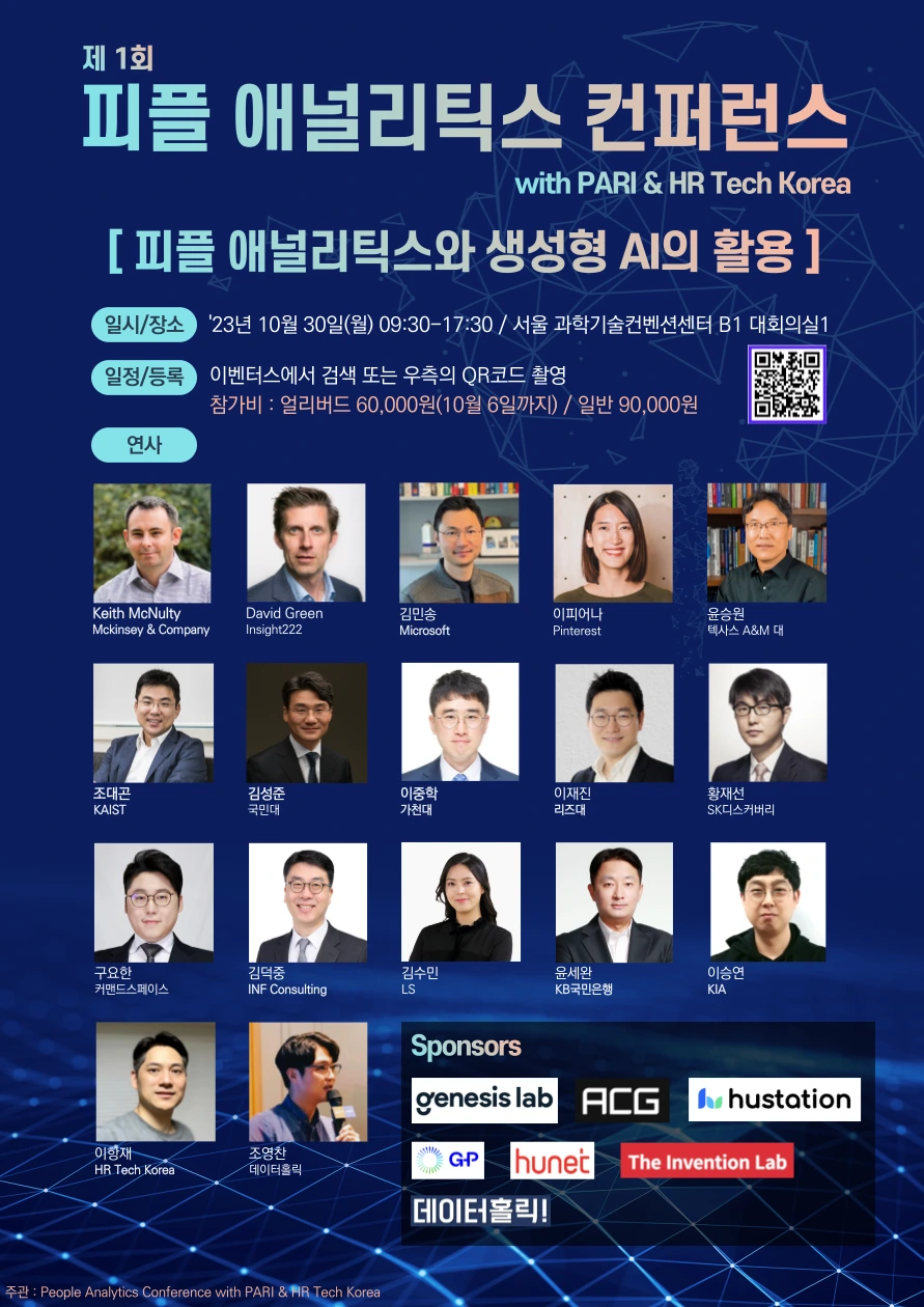 피플(HR) 애널리틱스의 활성화를 비전으로 삼고있는 학술 연합체인 People Analytics Research Institute (PARI)와 HR 테크 기업들의 생태계를 확대하고자 하는 HR Tech Korea는 그 뜻을 모아, 한국에서 제1회 피플 애널리틱스 컨퍼런스를 기획하였습니다.
