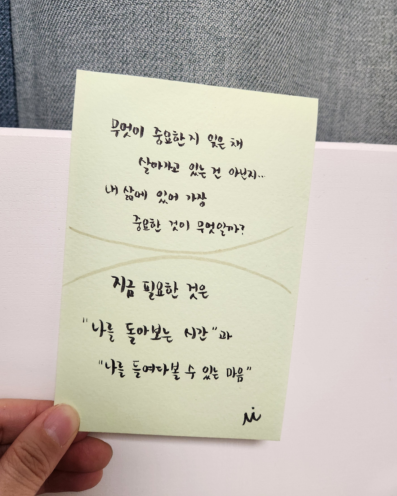 '나를 들여다볼 수 있는 마음'이 아닐까 싶다.