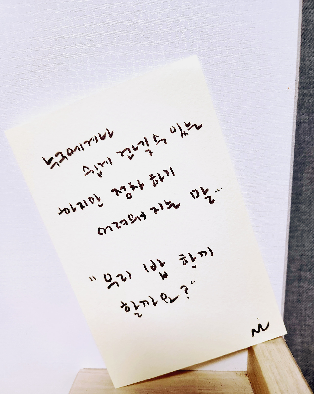 이전에는 따로 밥을 먹지 않은 팀원이 손에 꼽혔다면 지금은 반대로 따로 밥을 먹은 팀원의 수가 손에 꼽힐정도로 그 상황이 반대가 되었다. 하루 중 가장 많은 시간을 함께하는 동료이지만 점차 그 관계가 어려워지는 것만 같다. 같은 공간에서 공유되는 부분이 많기 때문에 훨씬 더 공감하기 좋은 상대임에도 불구하고 점차 가까이하기 먼 당신이 되는 느낌이다.