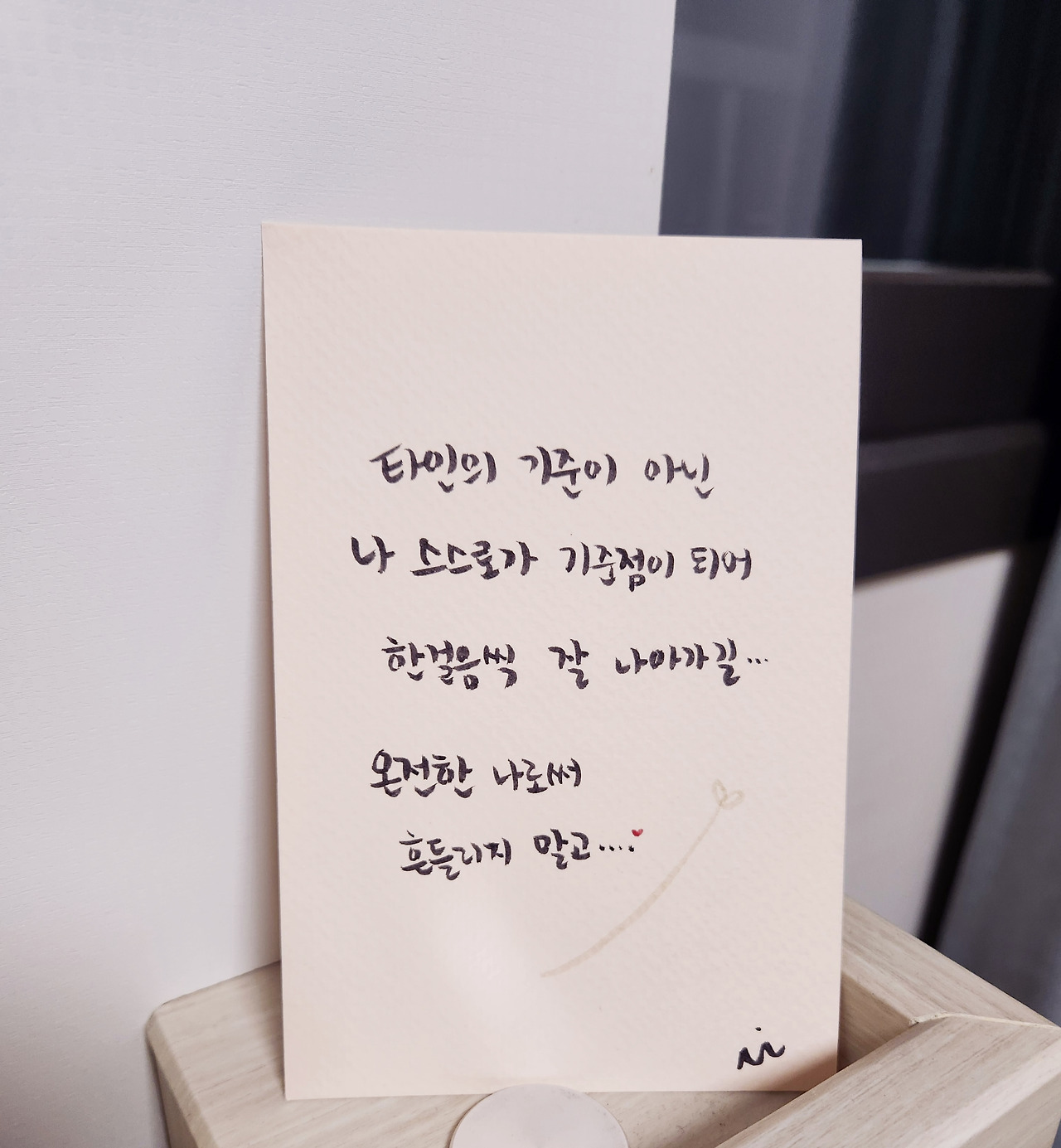 타인의 기준이 아닌 나 스스로가 기준점이 되어 한 걸음씩 잘 나아가길