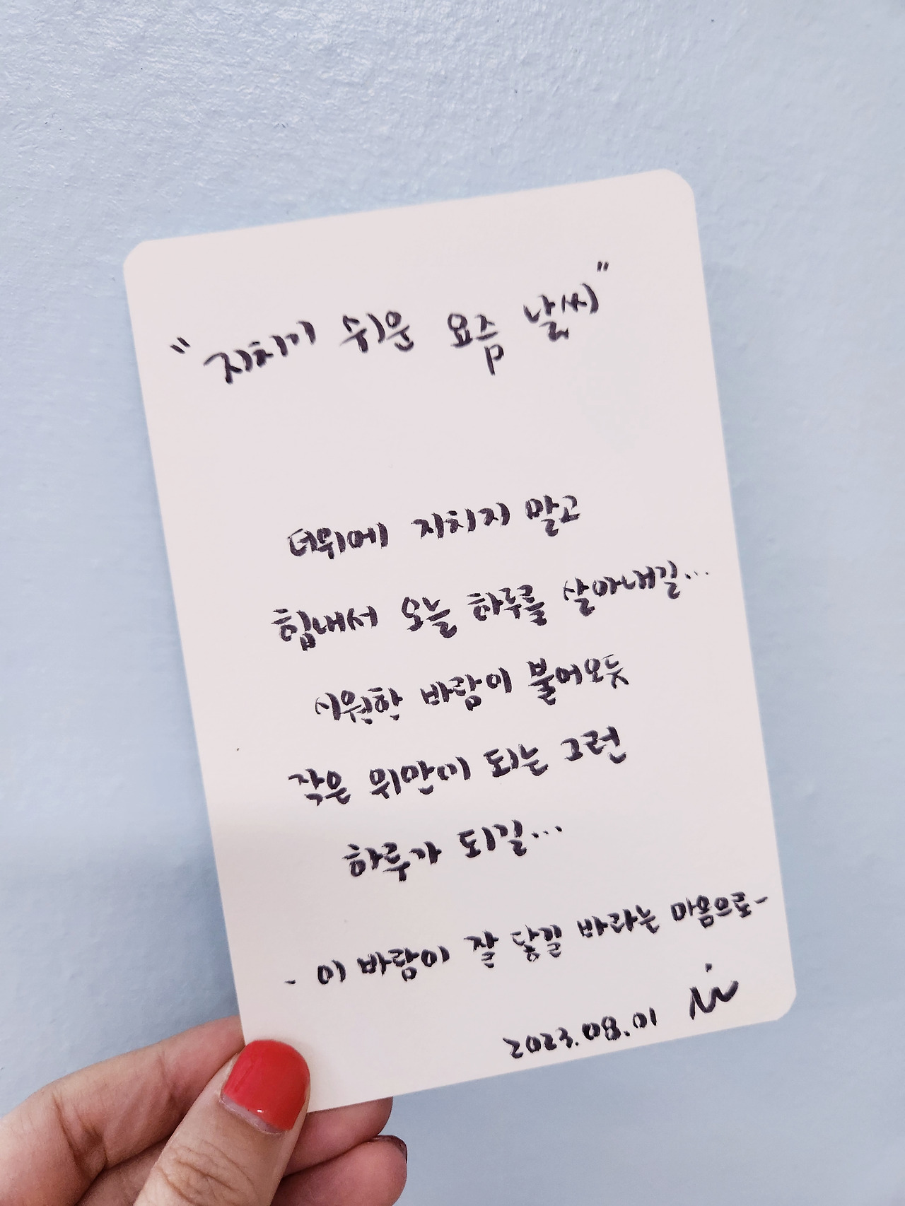 더위에 지치지 말고 힘내서 오늘 하루를 살아내길