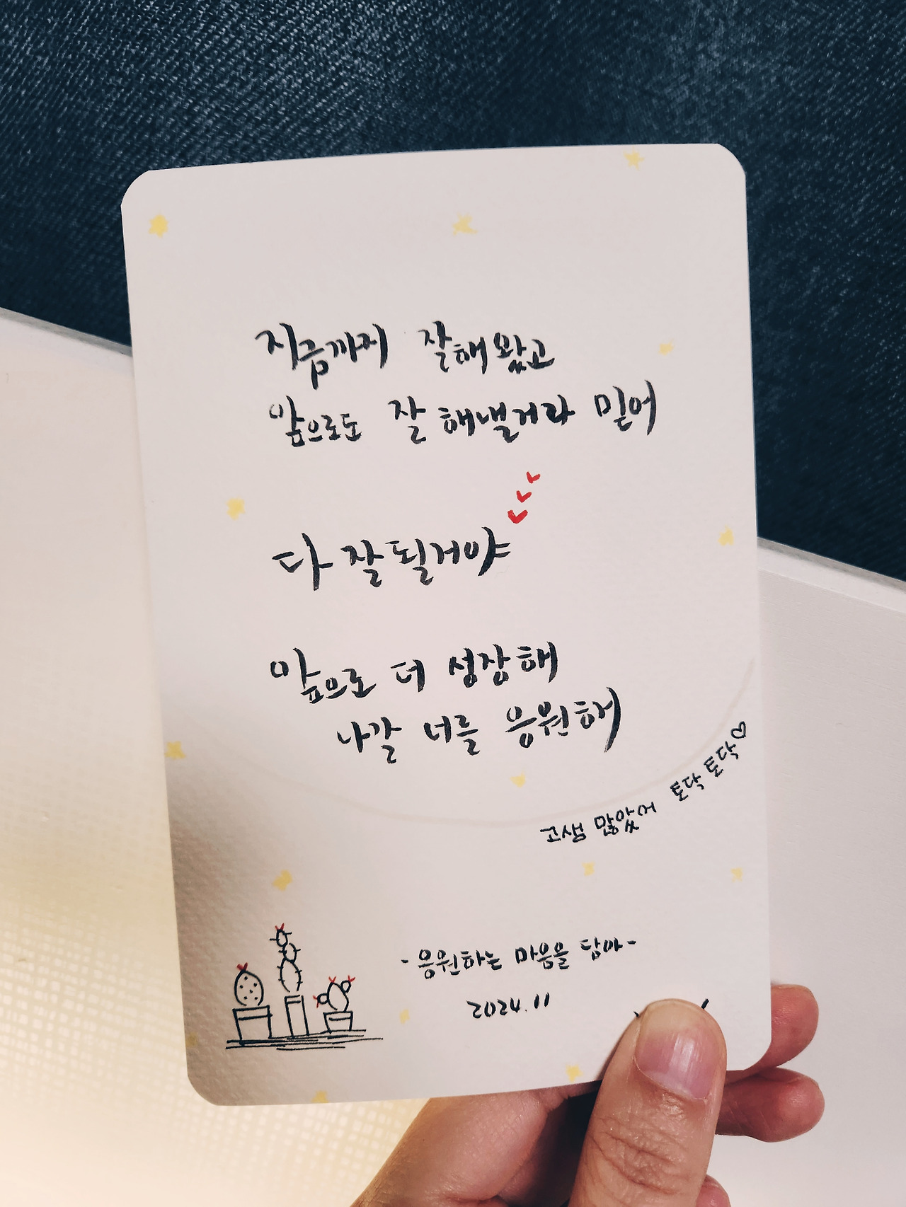 그래서 초콜릿과 캘리엽서를 전달하며,