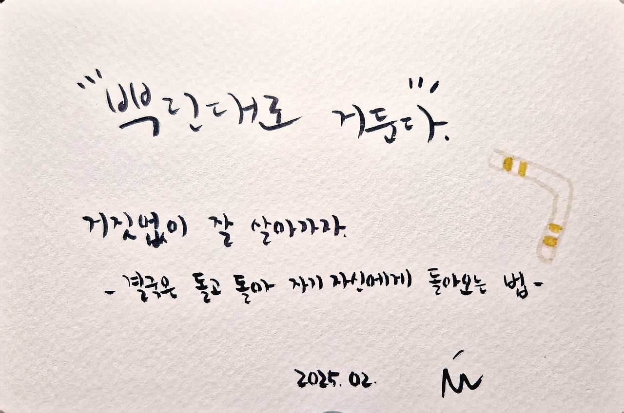 뿌린 대로 거둔다. 결국은 돌고 돌아 자기 자신에게 돌아오는 법이니 그때는 후회해도 늦고 되돌릴 수도 없다. 거짓 없이 진심을 다해 잘 살아가자.