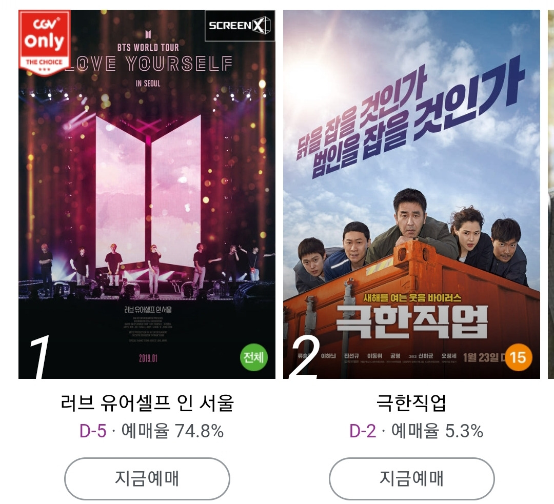 10월 31일 개봉한 <보헤미안 랩소디>가 13위로 내려가 주춤하다가 최근 7위로 복귀했습니다. 이쯤 되면 슬슬 좀비라는 수식어까지 딱 맞아들어가는 상황이네요. 하지만 온전히 이 영화의 유행 때문은 아닙니다. 경쟁작들의 예매율을 몽땅 먹어버린 <러브 유어셀프 인 서울>의 공(?)도 크죠.
