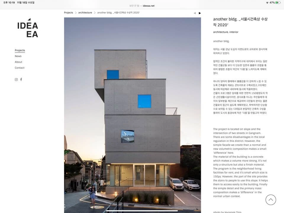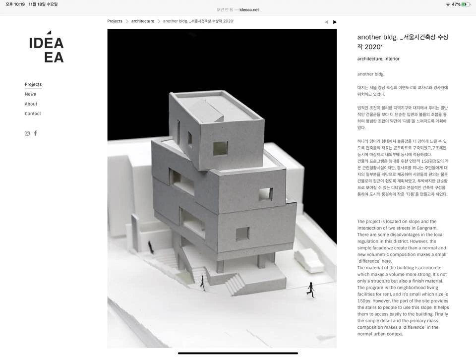 다음 편에는 건축 설계 서비스업으로서 건축사사무소의 웹사이트에 대한 이야기와 함께 소개글과 그들의 프로젝트 분류의 의미를 자의적으로 유추해보고자 한다.