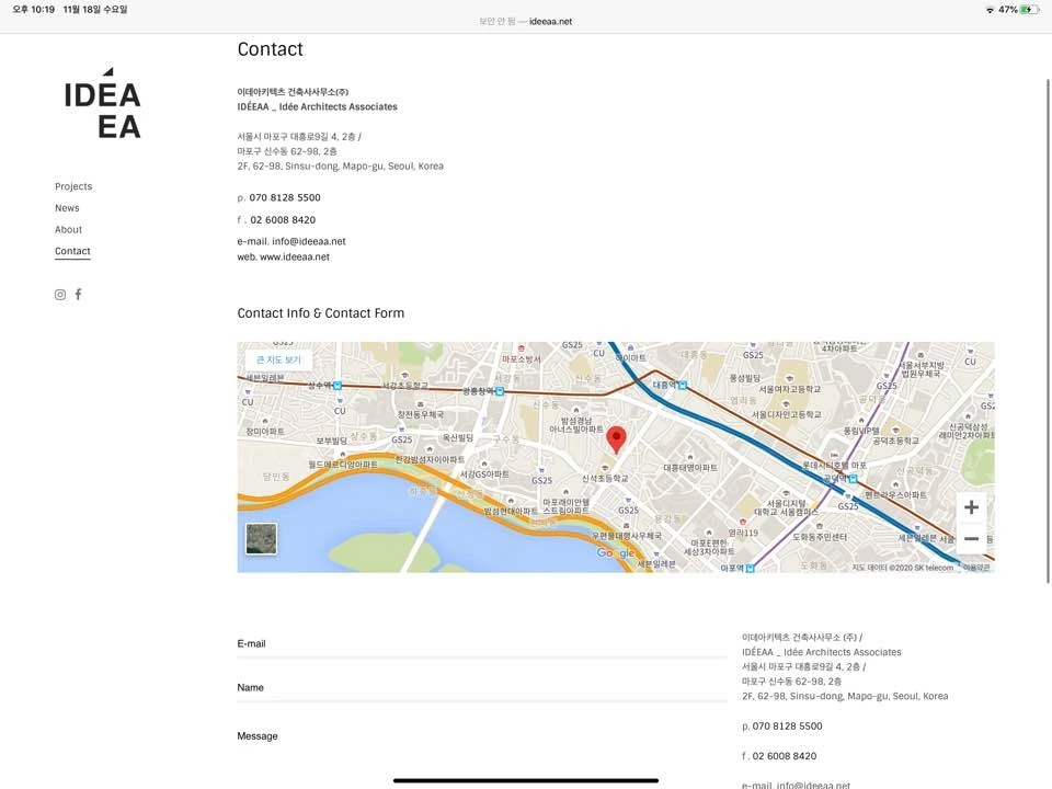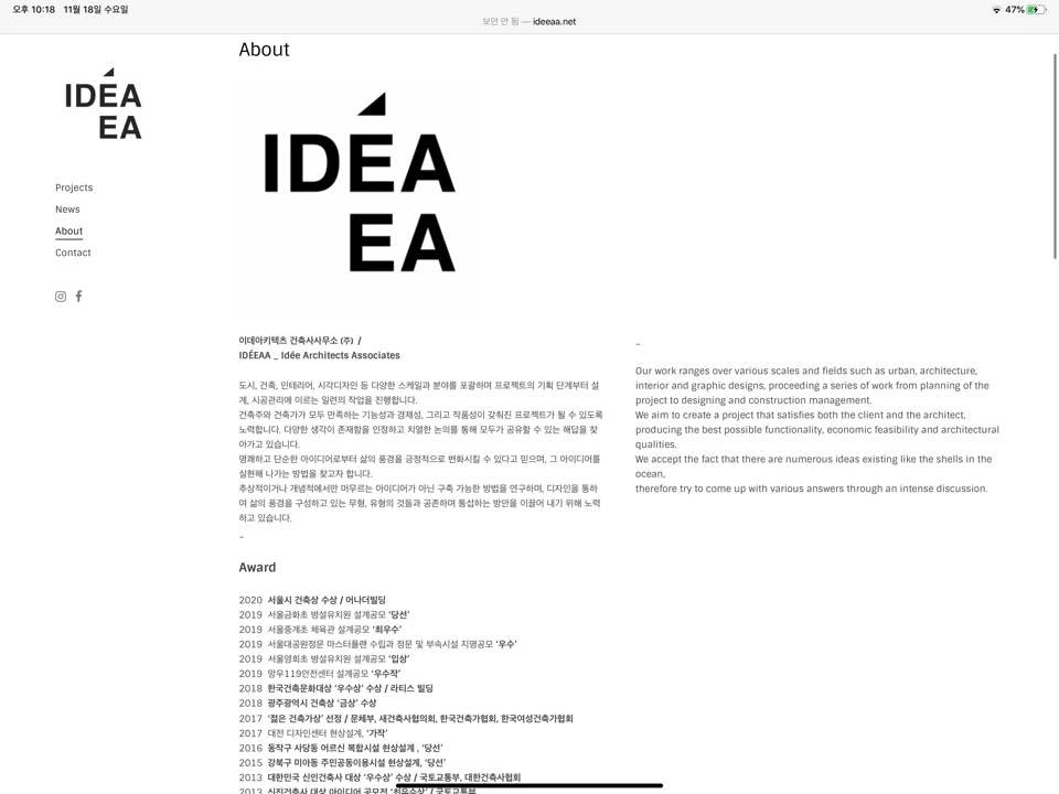 오늘 살펴볼 웹사이트는 이데아키텍츠 건축사사무소의 웹사이트이다.