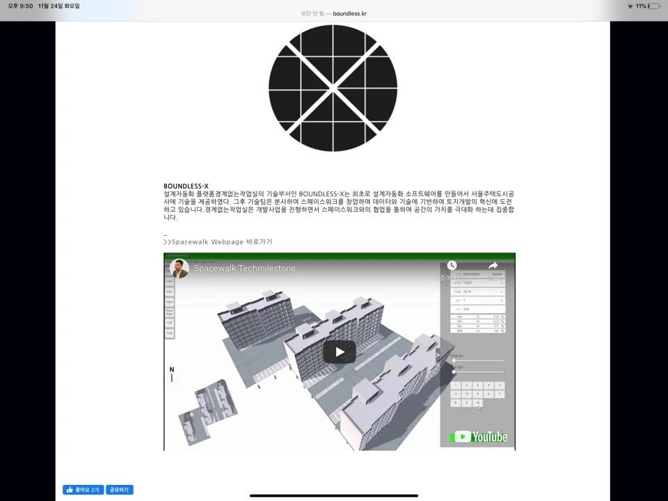 bounless-x의 경우에는 설계 자동화 소프트웨어를 설명하고 있다. 지금은 스페이스워크를 창업하여 따로 운영하며 웹페이지 링크 또한 나와있다. 스페이스 워크의 웹페이지가 더 잘 디자인되어 있고 그 안에서 경계없는 작업실의 사람들을 발견할 수 있었다.
