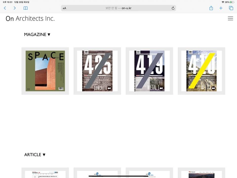 마지막으로 news에는 article / exhibition / magazine / media 이렇게 그들의 작업을 다룬 각종 매체를 전반적으로 다루고 있다.