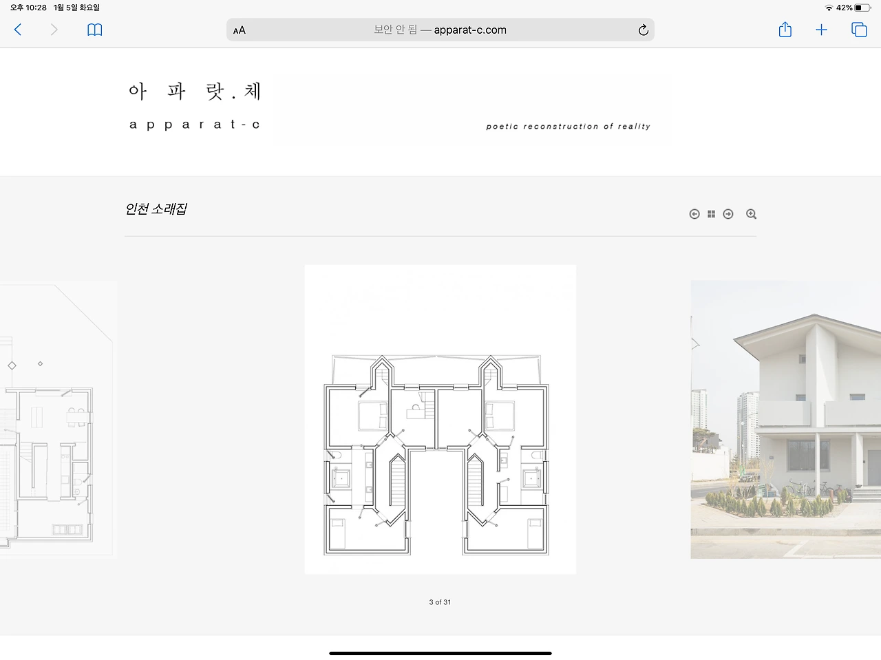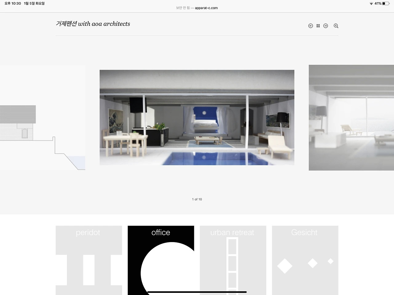 오늘 살펴볼 젊은 건축가의 홈페이지는 아파랏.체라는 건축사사무소의 웹사이트이다.