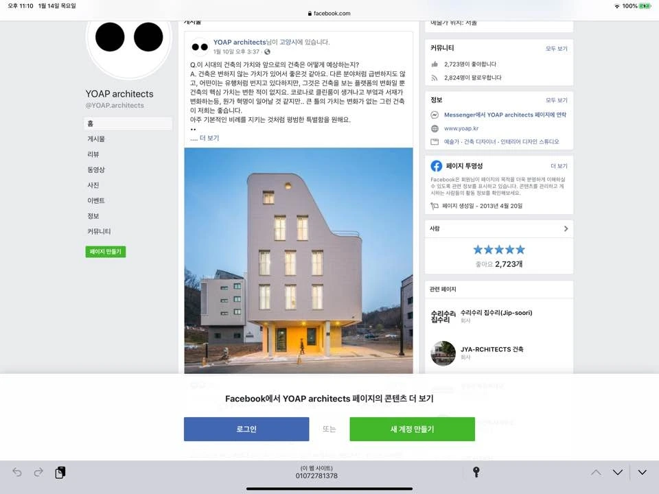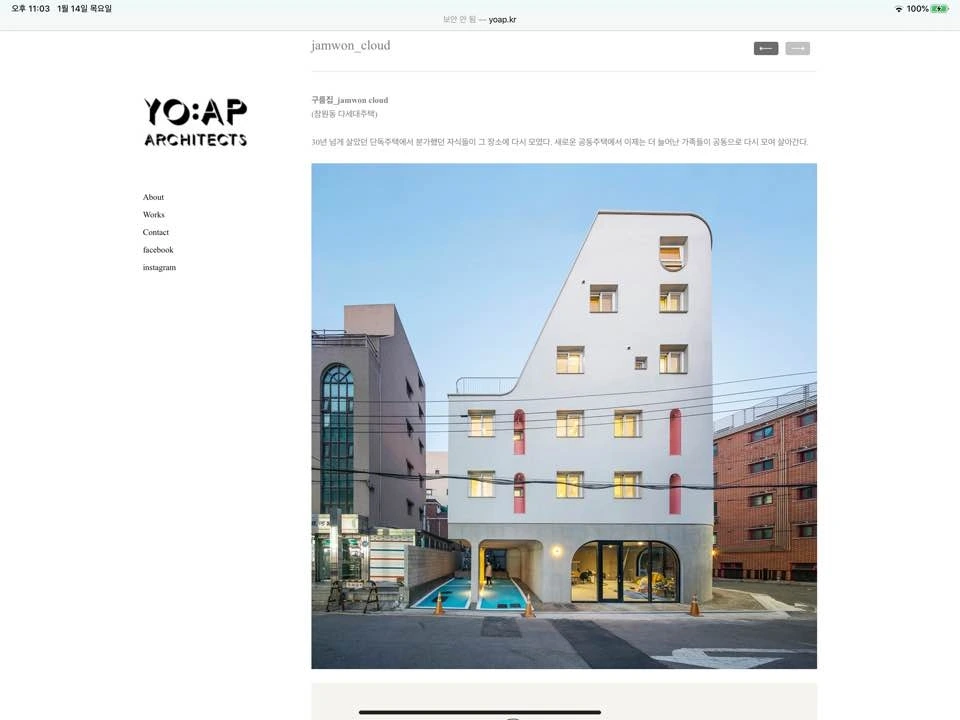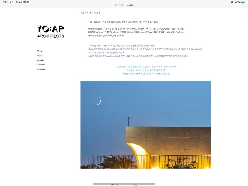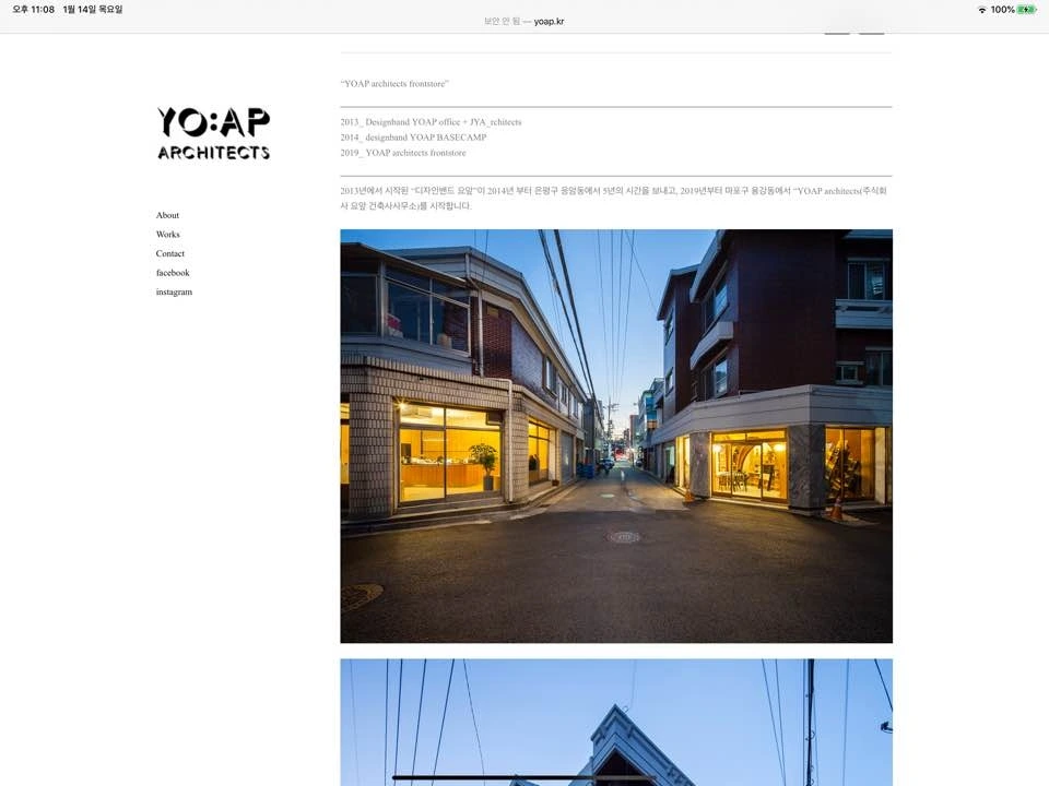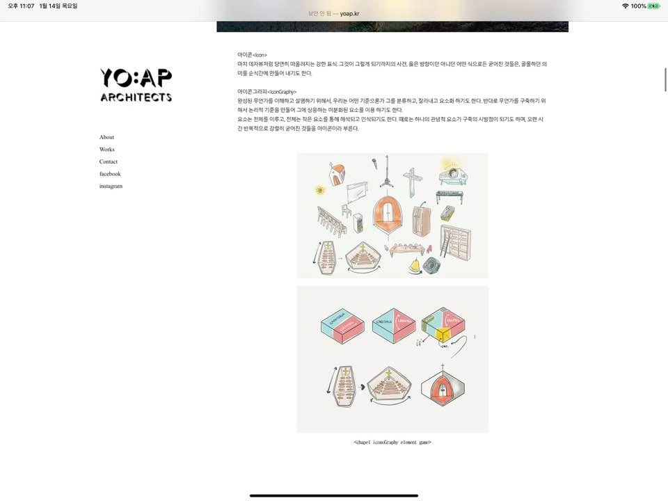 오늘 살펴볼 젊은 건축가의 웹사이트는 요앞 건축사사무소의 것이다. 기억에는 디자인밴드 요앞이었는데 2019년부터 요앞 건축사사무소로 이름을 변경한 듯하다.