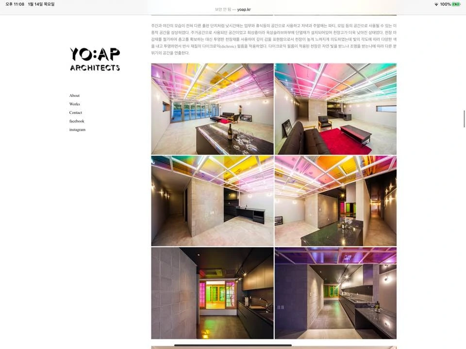 무엇보다 요앞 건축사사무소의 작업들을 소개한 페이지들을 더 찬찬히 읽어보고 싶다. 그들의 다채로운 색을 가진 공간들을 가보고 싶다는 생각이 들었다. 그들의 소개글에 나온 단어들 처럼 완결된 오브제일지 연출된 장면들일지 궁금하다.