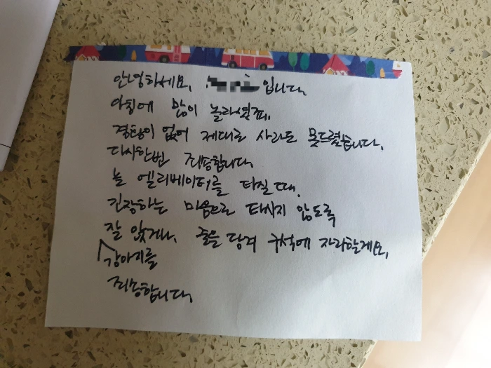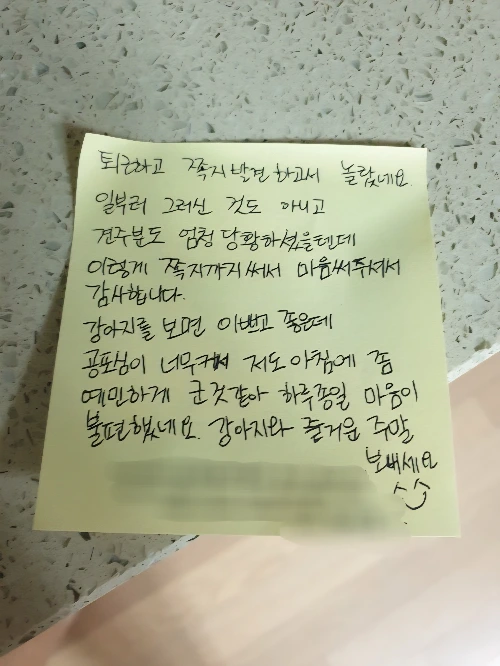 퇴근하고 쪽지를 발견하고서 놀랐네요.