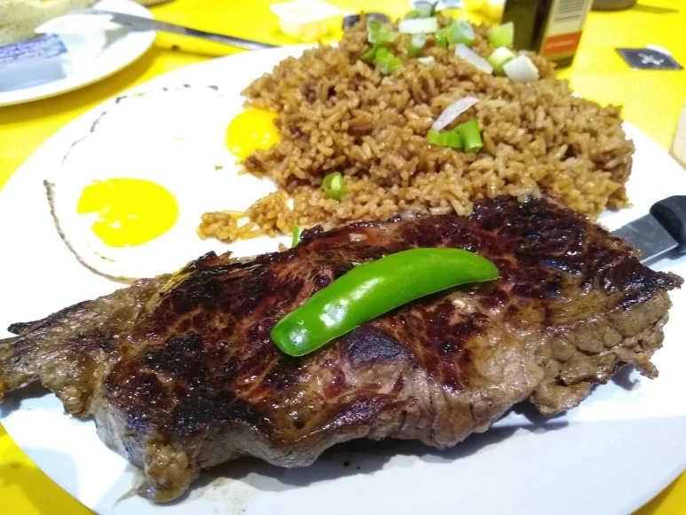 '흠~ 그럼 스테이크 맛이 별로겠지' 물론, 나이프를 지긋이 눌러주기만 하면 썰어지고 입에 넣은 후에 악관절에 살짝만 힘을 줘도 녹아 없어지는 최고급 스테이크는 아니다. 하지만 분명히 맛있는 제대로 된 스테이크다. 사이드로 나오는 볶음밥도 아주 맛있다.