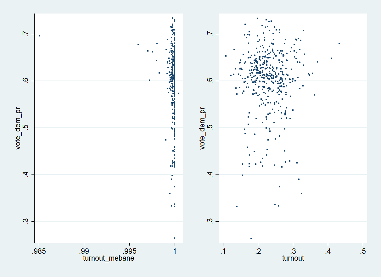 그래도 정치학으로 박사학위를 받고, 주로 계량적 방법을 배우고 써온 사람으로 계량적 방법을 사용하는 모든 정치학자들이라면 공유하고 있을 상식을 기반으로 미베인 교수의 분석의 문제점을 지적하고자 한다. 물론, 내가 여기에서 제기할 대부분의 논점은 이미 박원호 교수님께서 다 지적하신 내용을 퍼다나르는 수준이긴 하다. 참고하길 바란다.
