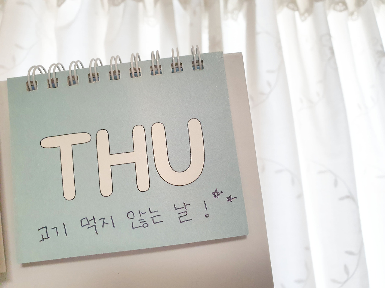 아기 디데이 달력 귀퉁이에 적어놓았던 '고기 먹지 않는 날'