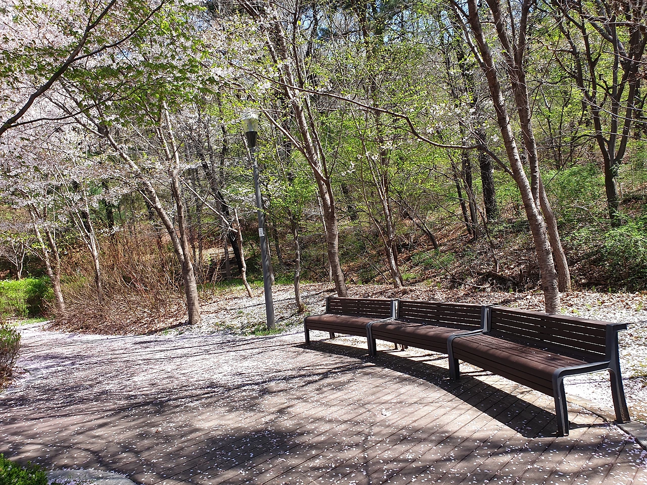 오늘 이곳은 벚꽃잎이 우수수 흩날리고 있다. 유치원에서 바깥 놀이를 나온 듯한 아이들이 선생님 인솔 하에 뛰어노는 모습도 보이고, 테이블에 옹기종기 모여 앉은 아주머니들의 모습도 보이고, 스트레칭하는 어르신도 보인다(처음에 공원에서 뵀던 어르신인 것 같다). 한 발짝 뒤에서 바라보는 풍경이 눈이 부시다. 게임을 즐기는 아이들의 함성 소리가 공원에 맑게 울린다. ‘이보다 더 큰 행복이 있을까’ 생각이 드는 순간이다.