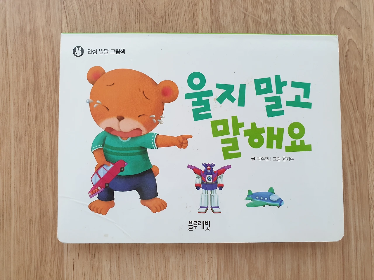 <행복 아파트 친구들>은 유치원에 다니는 친구들의 하루 일과와 그 일과 속에서 아이들이 느끼는 다양한 감정을 담고 있다. 호야는 여러 감정보다는 아직 책 속 아이들의 행동에 더 관심을 갖는 것 같다. <울지 말고 말해요>는 갖고 싶은 장난감을 친구가 갖고 놀 때 울지 않고 자신의 생각을 표현하는 내용이다.