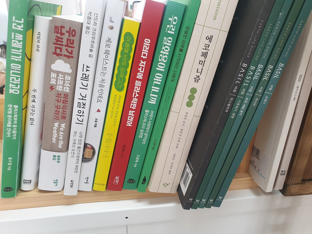 사장님과 이런저런 이야기를 나누던 중에 한쪽에 꽂혀 있는 제로웨이스트 관련 책들이 눈에 들어왔다. 무심코 한 권을 뽑아서 보고 있으니 사장님이 옆에서 "그 책들 대여하는 거예요. 빌려보시고 갖다 주시면 돼요." 하고 알려주셨다. 판매하는 책인 줄 알았는데 대여라니. 신나게 한 권을 골랐다.